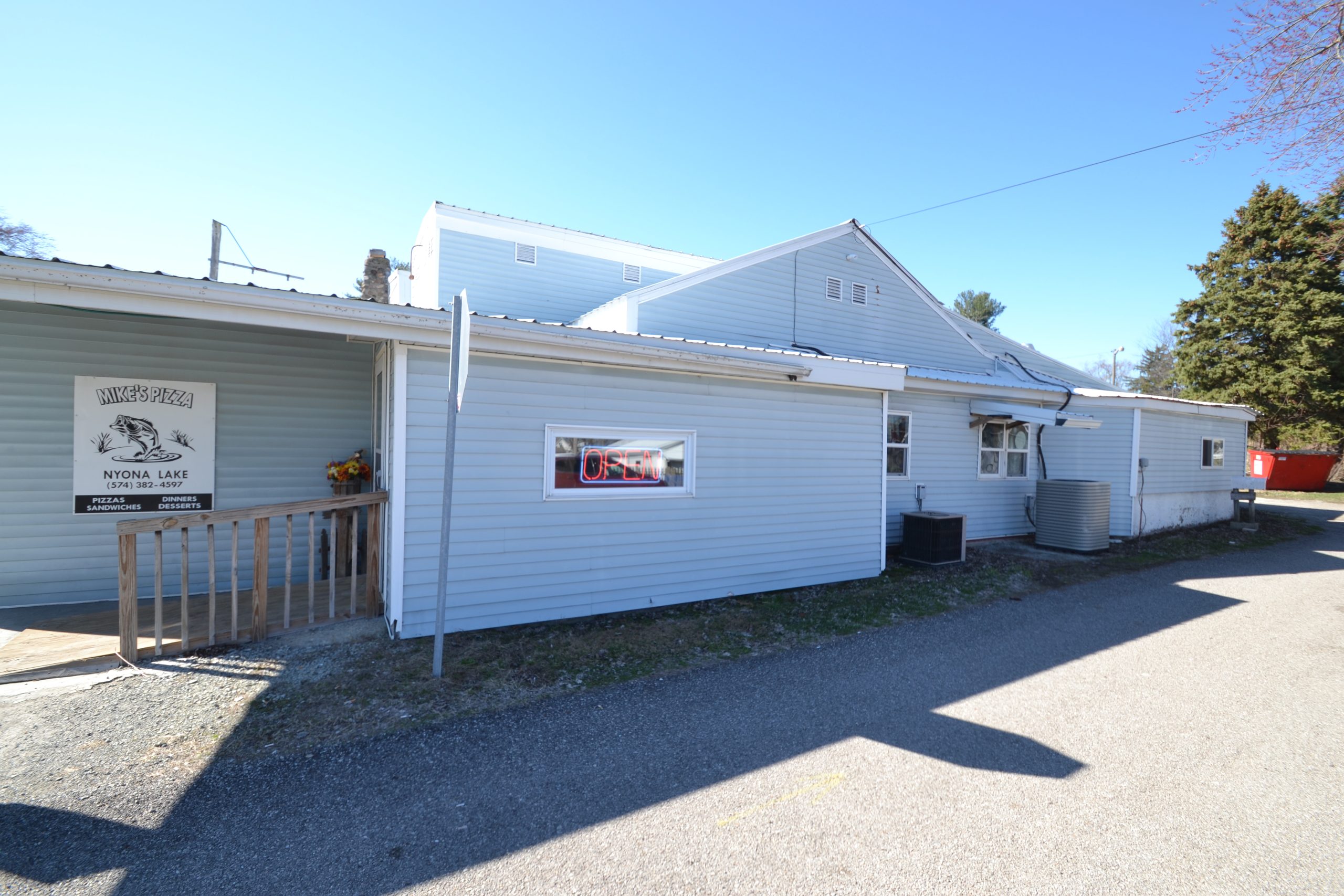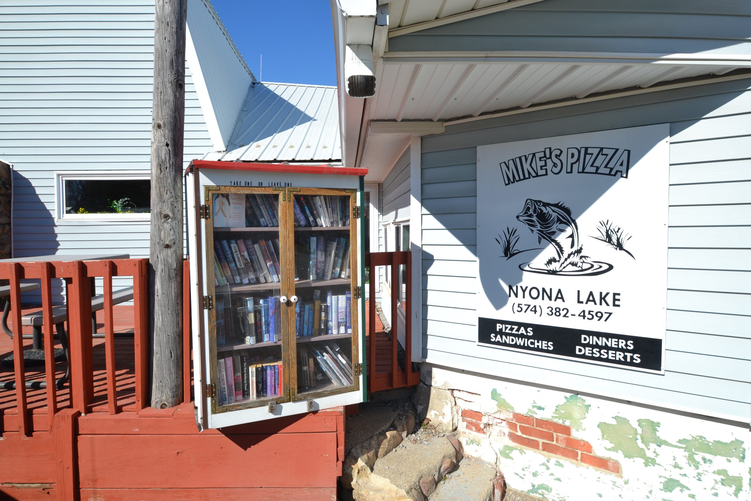 This building is home to Mike’s Pizza near Nyona Lake, a spot known by locals and lake visitors alike.