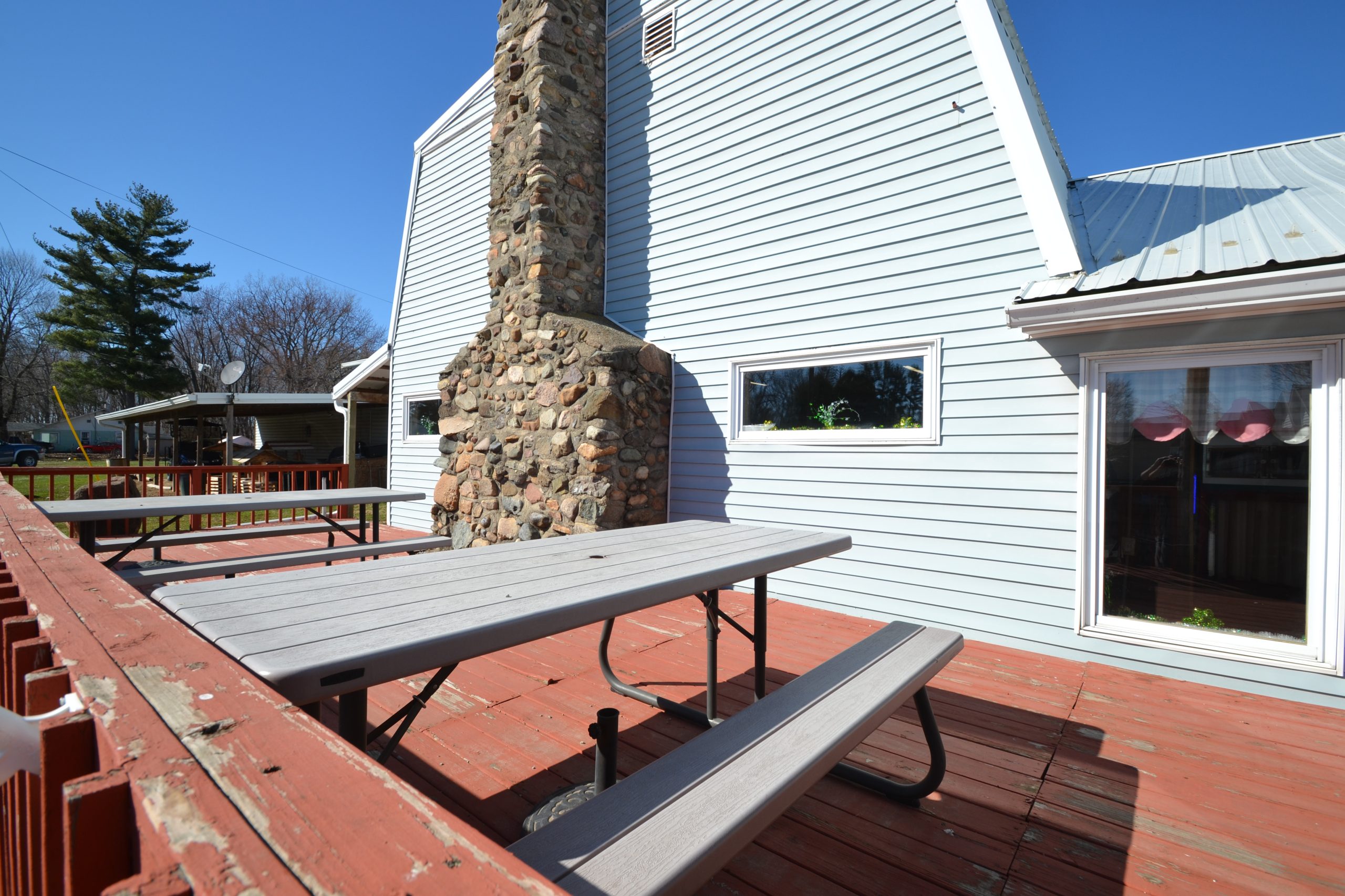 There is a large open wood deck for outdoor dining and a covered “extension” on the barn for more space. The only limits are your imagination.
